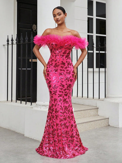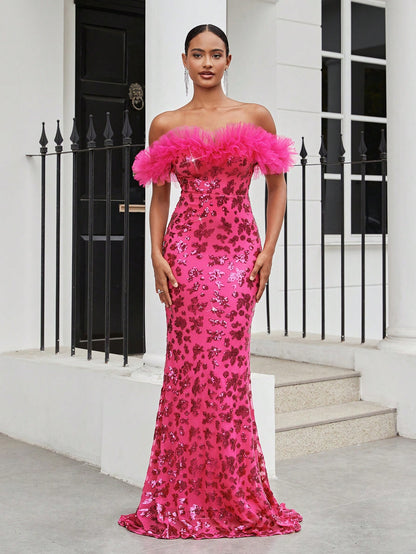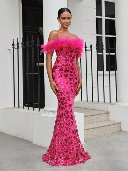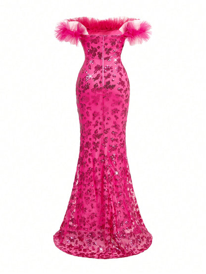 LLStyle Neon Luxe Off-Shoulder Chiffon Gown