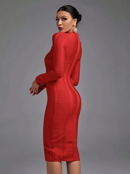 This mid-calf sheath dress features a classic O-neckline and long sleeves for a timeless, elegant look. Made from high-stretch knitted fabric, it offers a flattering, comfortable fit that hugs the body. With a zipper closure and natural fiber composition, it’s perfect for formal occasions, office events, or sophisticated evenings out.