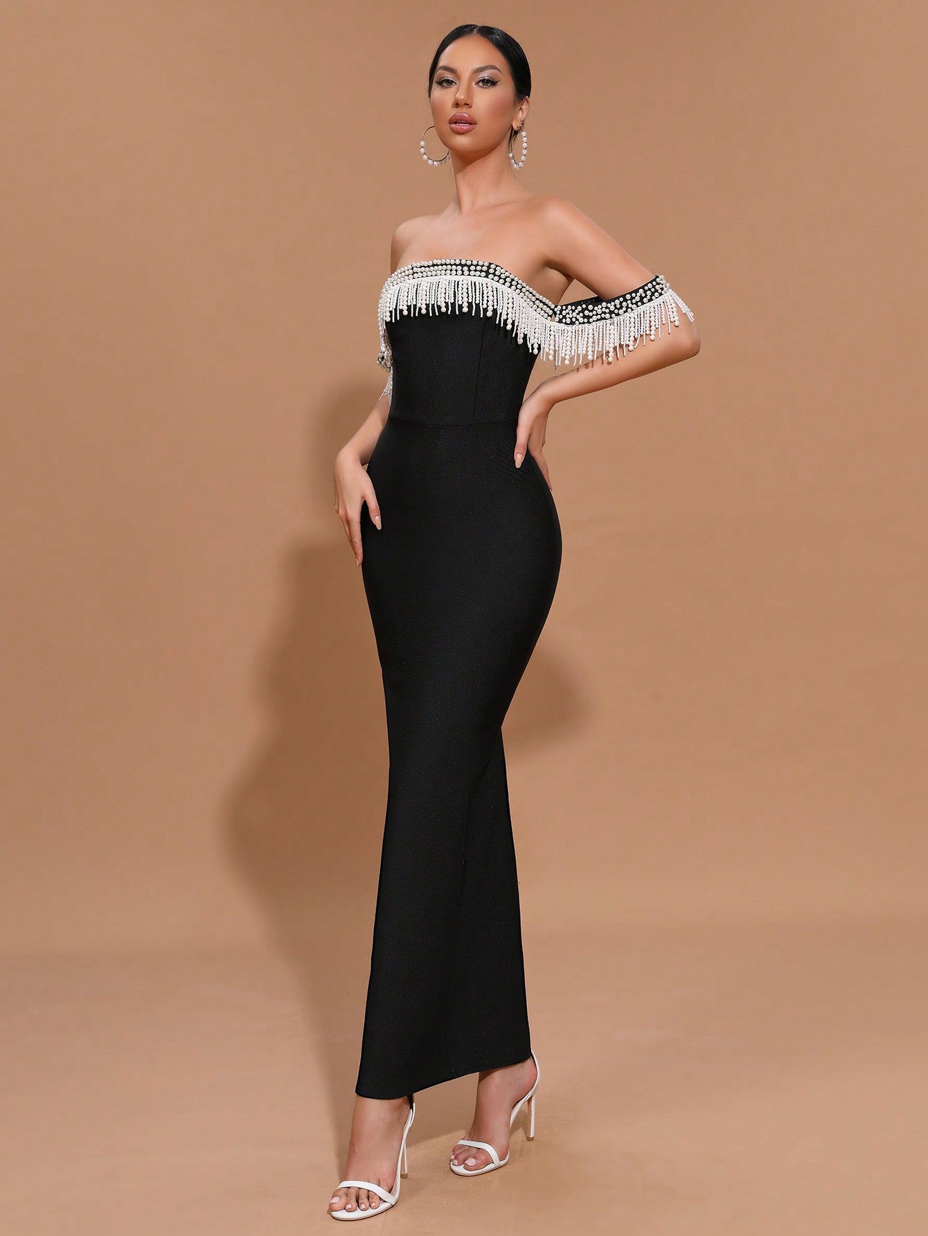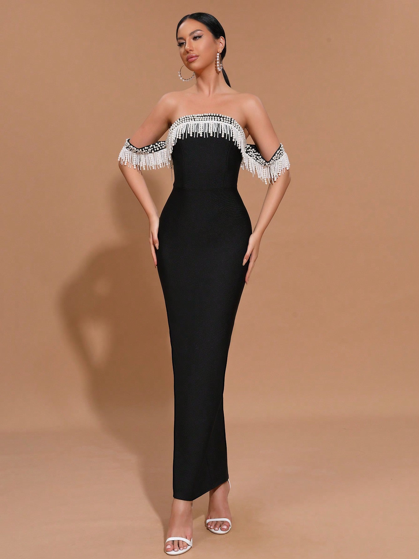 LLstyle White Regal Chain-Embellished Maxi Dress