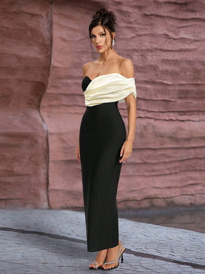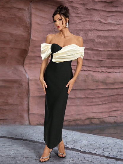 LLstyle Twist Off-Shoulder Long Bodycon Formal Dress