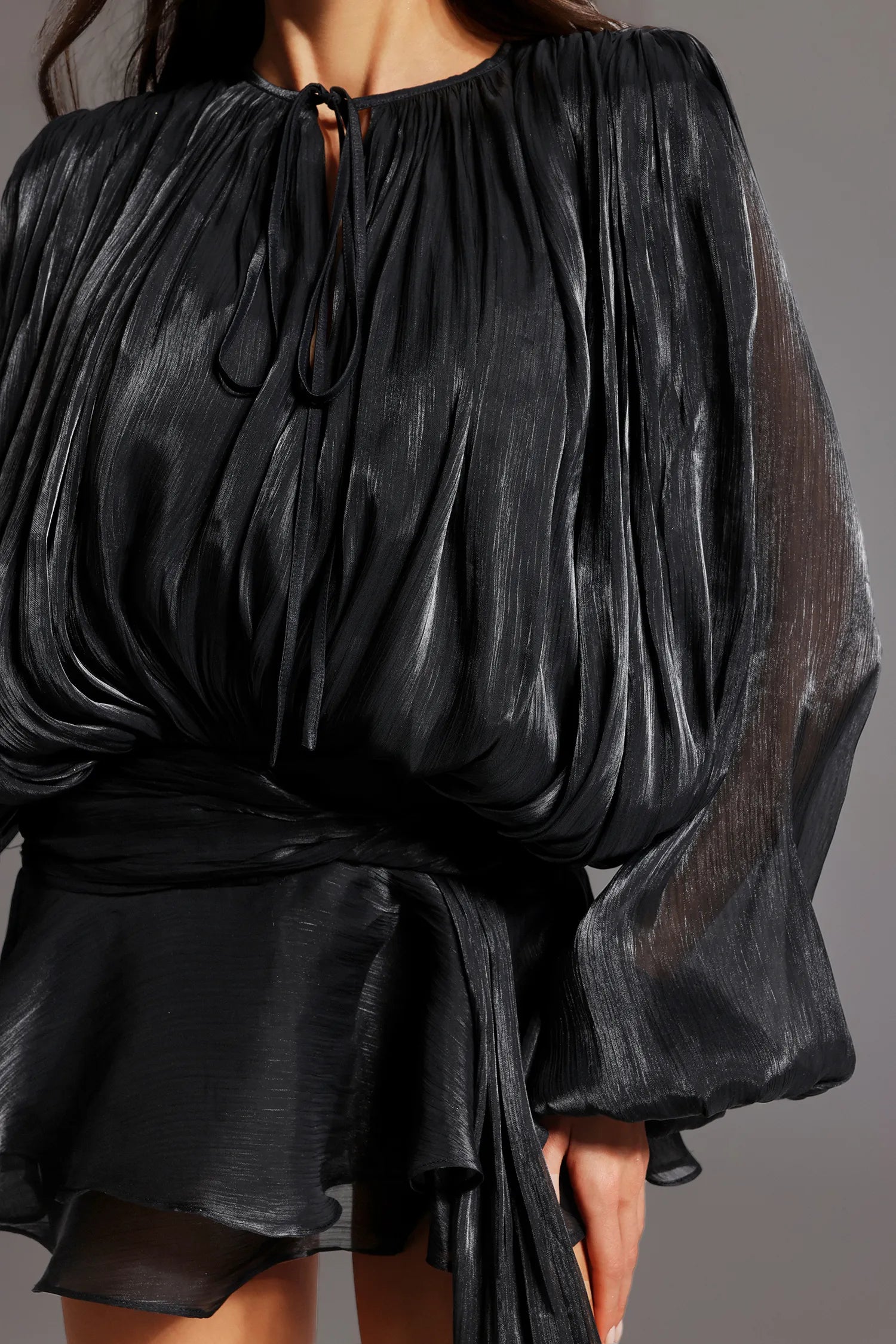 This mini dress features a classic V-neckline and a solid design for a timeless, versatile look. Crafted from woven fabric with no stretch, it offers a structured and elegant fit. The draped detailing adds a touch of sophistication and movement. Designed as a pullover style, it ensures effortless wear. Falling above the knee, this mini dress is perfect for both casual outings and dressier occasions.