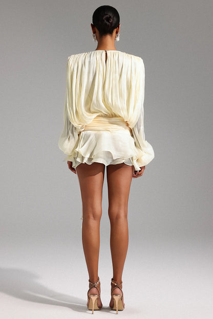LLstyle Ivory One-Shoulder Draped Mini Dress