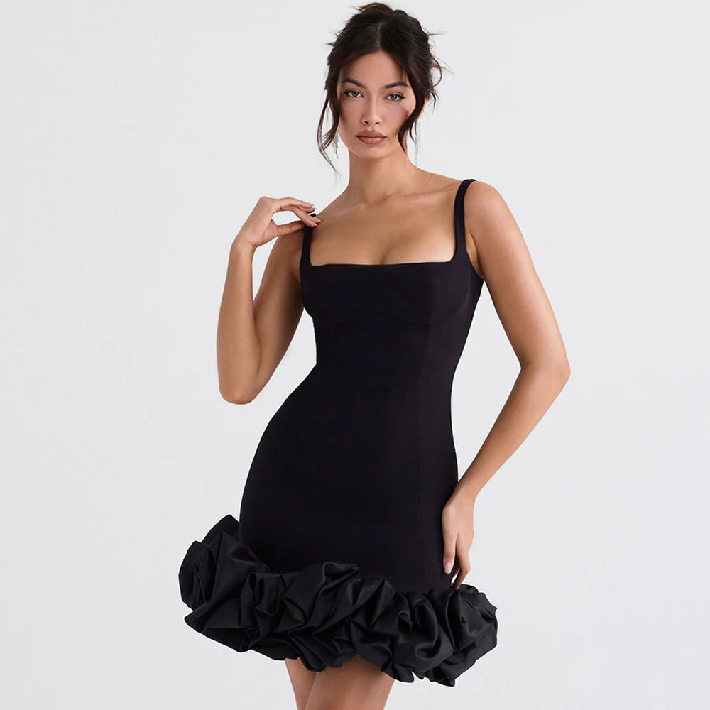 LLstyle Black Ruffle Hem Mini Dress
