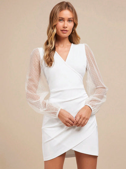 LLstyle Ivory One-Shoulder Draped Mini Dress