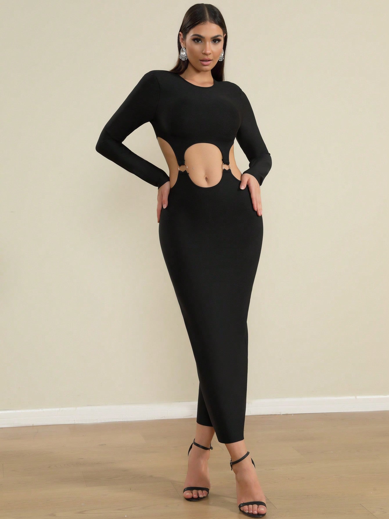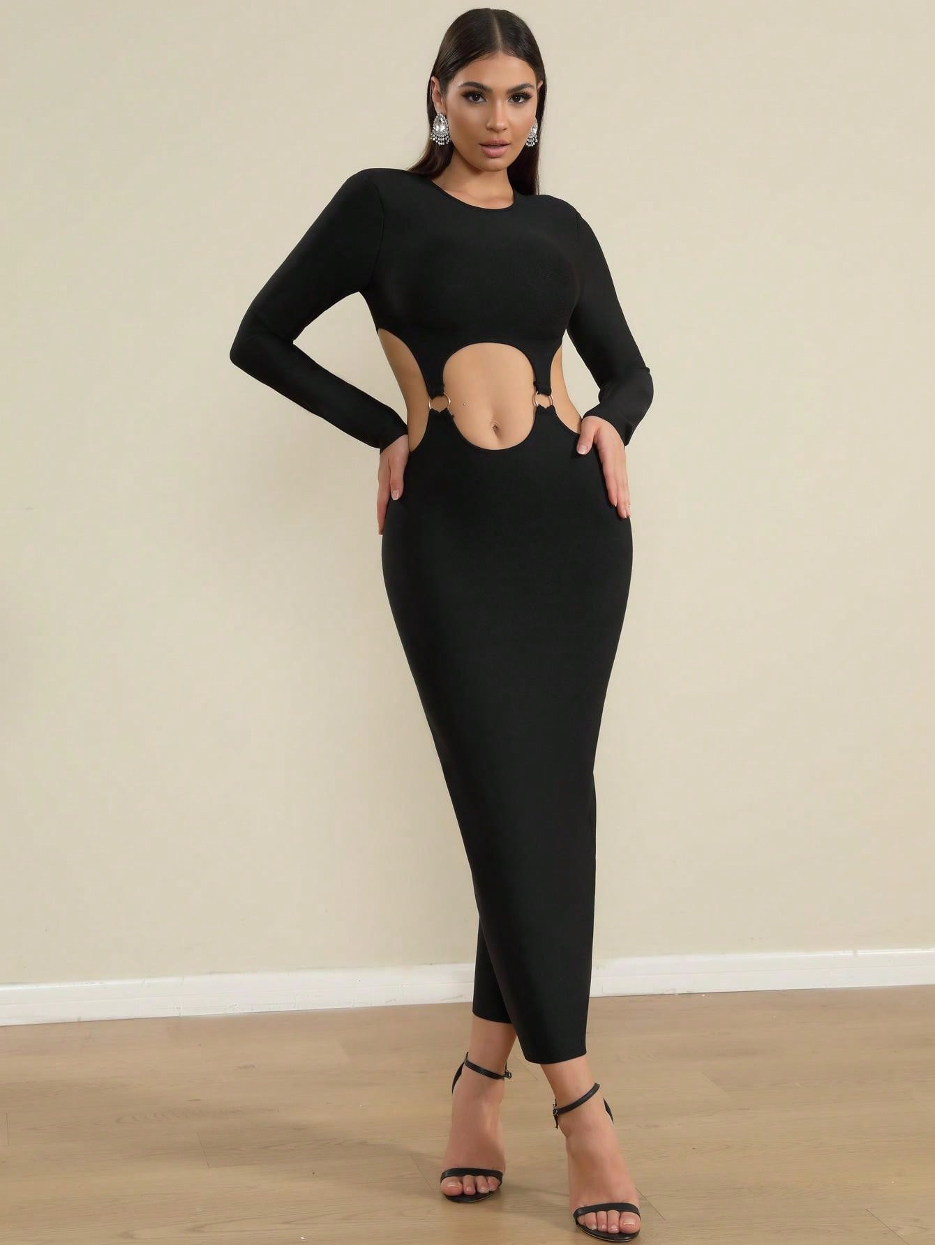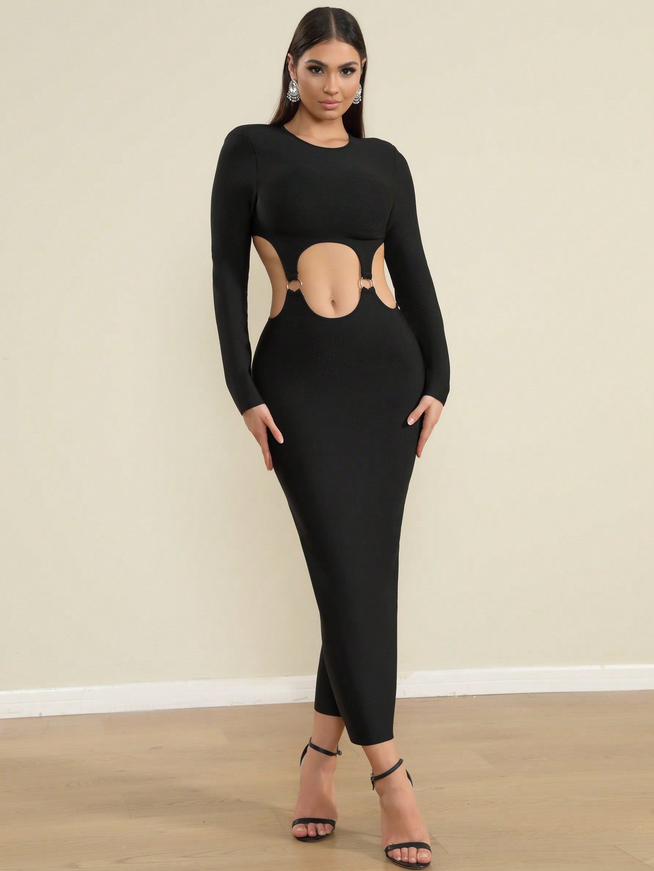 LLstyle Black Strappy Cutout Midi Dress