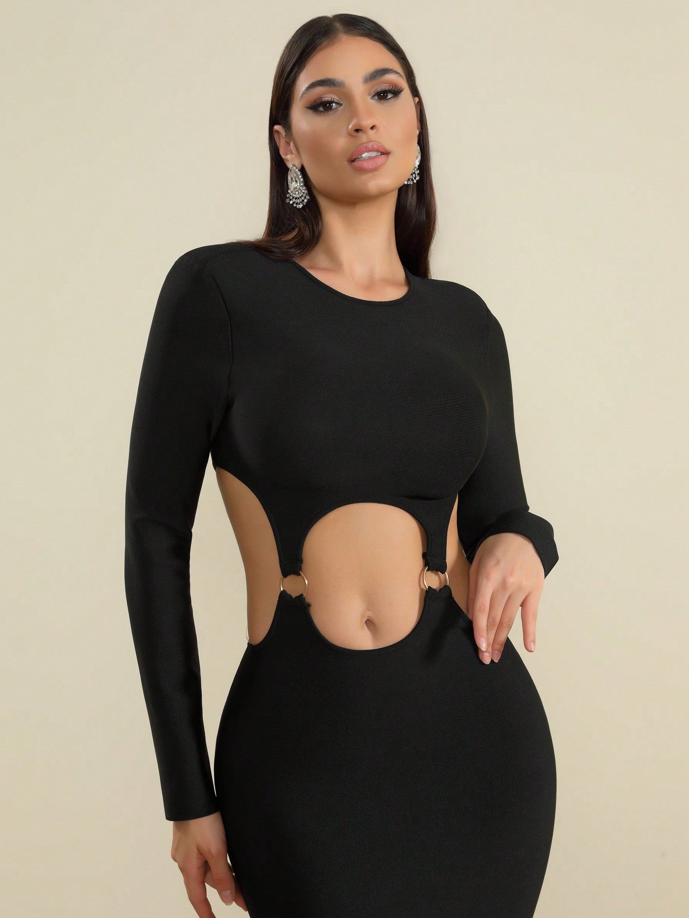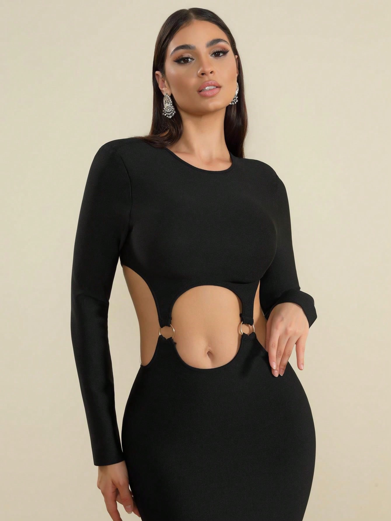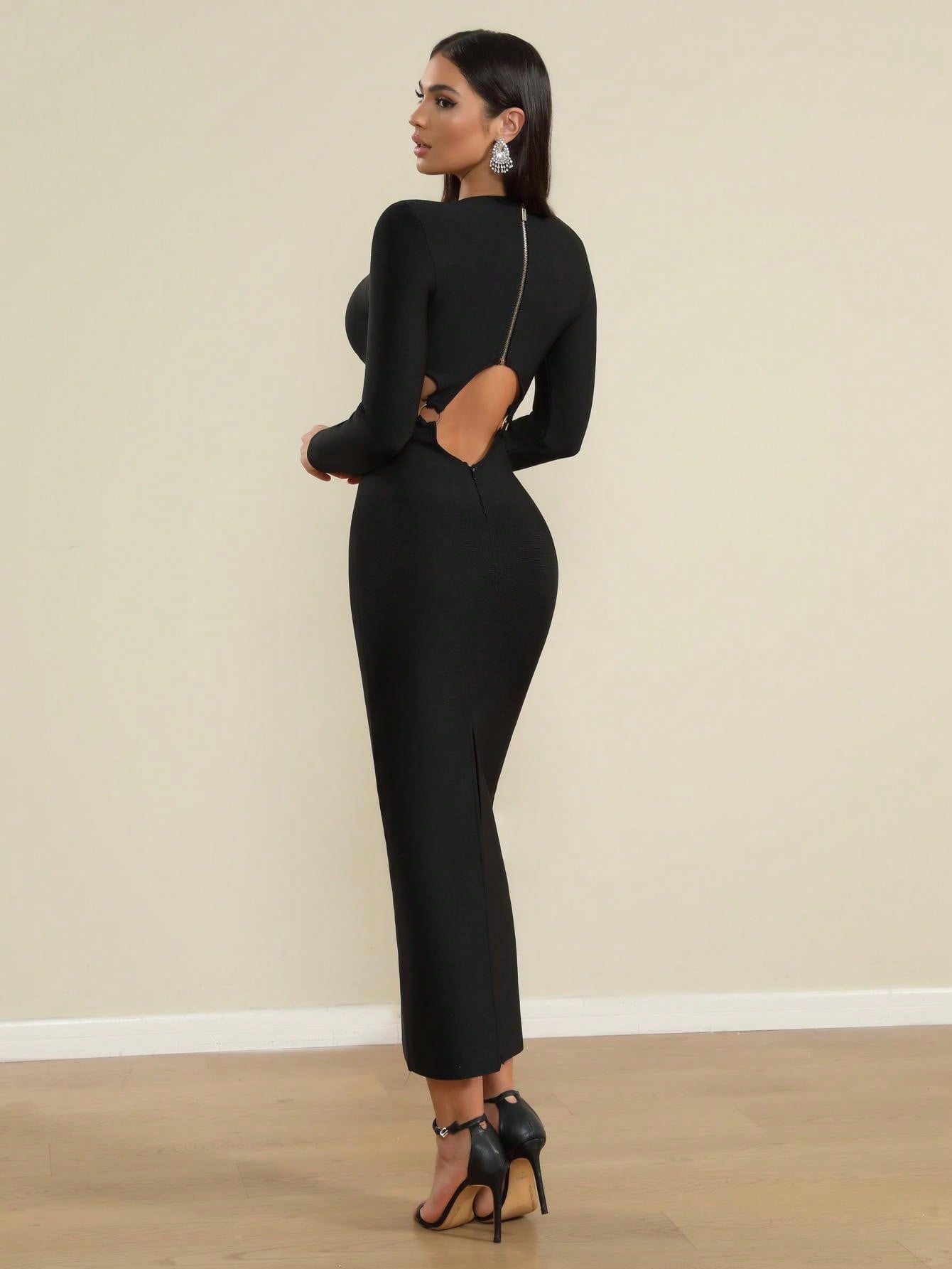 LLstyle Black Strappy Cutout Midi Dress